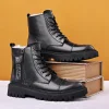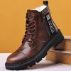 High-top Zipper Plus Velvet Leather Boots Warm Snow Boots